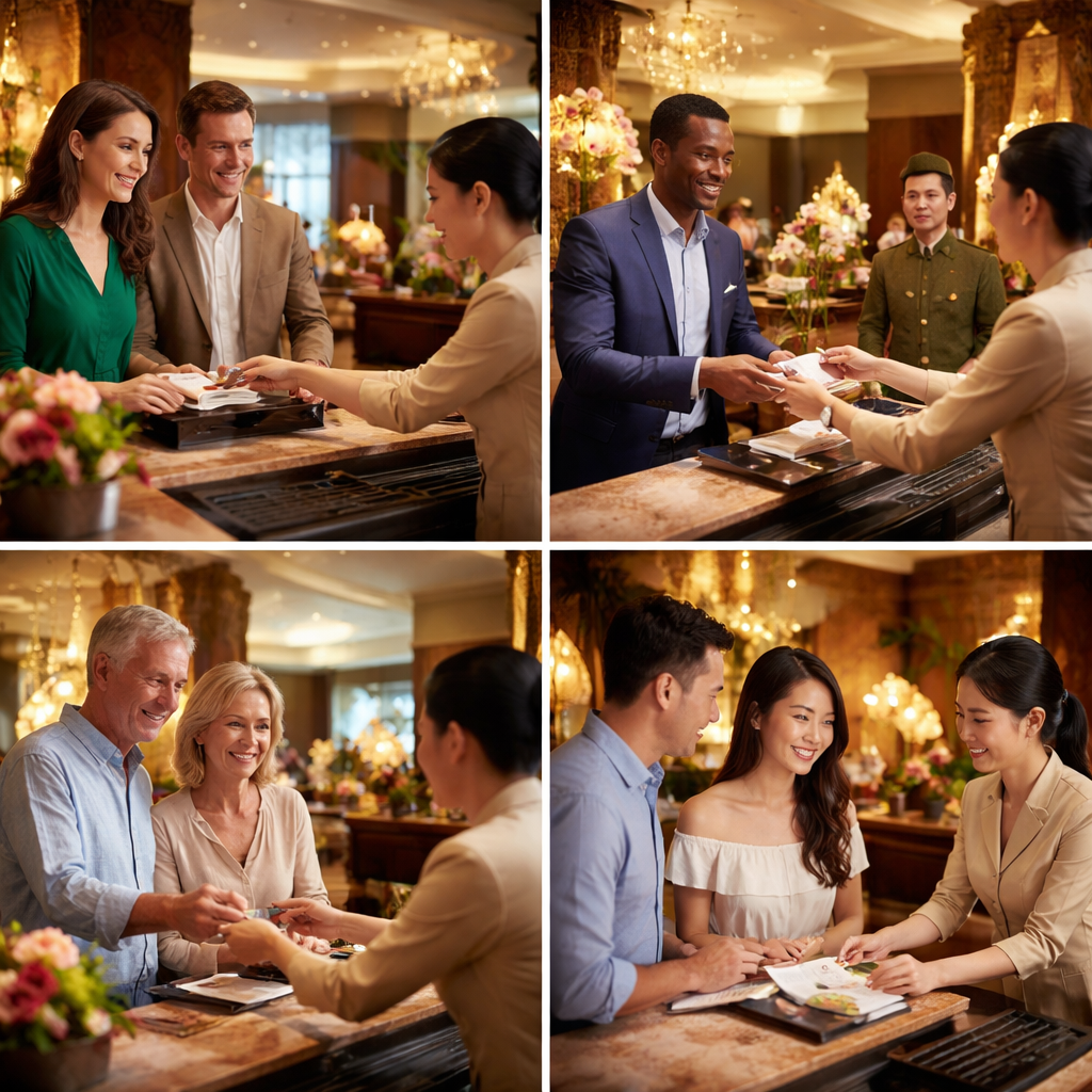 The end of the first interaction is very important. A warm and polite ending leaves a positive feeling. Guests should feel supported and confident after check-in. Clear guidance helps them know what to do next. A friendly attitude shows ongoing care. In a luxury hotel, the last moment at the desk should feel just as welcoming as the first. A good ending helps create a memorable and pleasant stay.