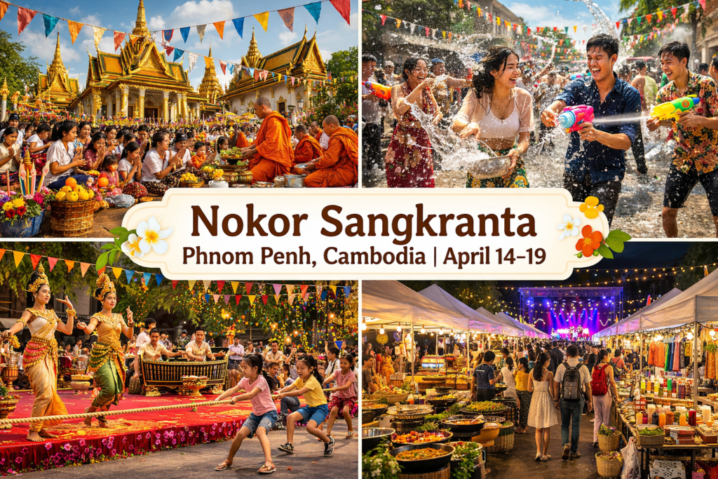 - a colorful Khmer New Year celebration in Phnom Penh filled with traditions, food, and fun