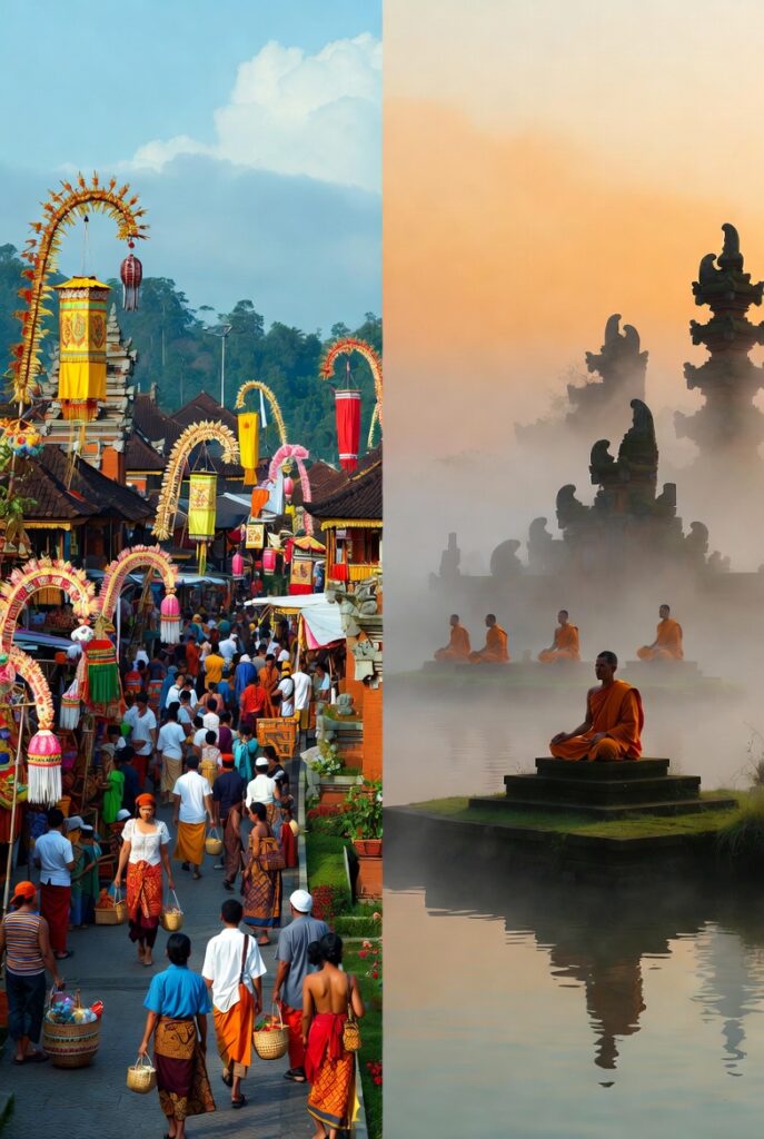 Last year, I went to Bali, and I saw Nyepi. It was very interesting. The day before Nyepi, the streets were busy. People made big statues. They called them ogohâogoh. The statues looked like demons. At night, people walked with the statues and then they burned them. The fire was big, and the smoke was everywhere. It was very exciting.