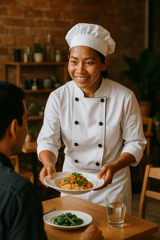 Nowadays Chantrea runs her own top restaurant in Phnom Penh. She thinks about the time when she started her career in the tourism and hospitality business.