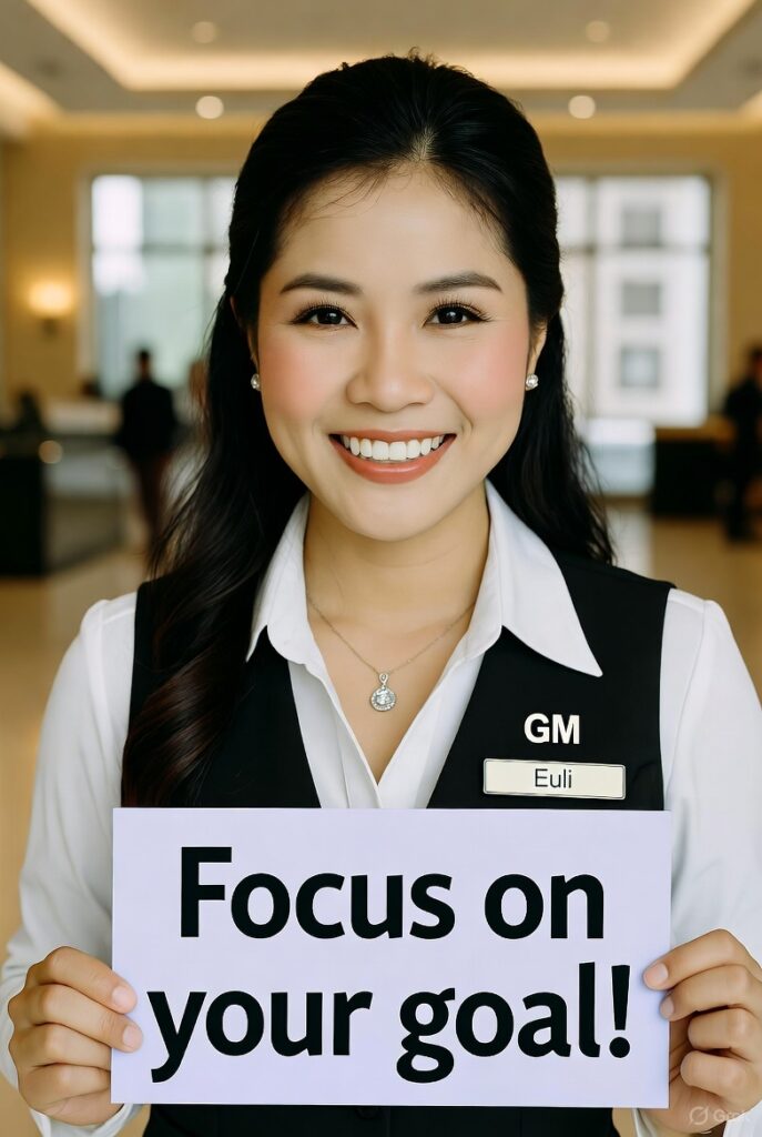 Her name is Ahou. Her goal is to speak English well. She stays focused by knowing her goal clearly and making a plan with small steps. She does one small thing every day. Sometimes she feels tired or lazy, but she keeps trying. She thinks about her dream and why it is important for her. She checks her progress to see what she has done and what she still needs to do. Her friends and her family give her support. When she reaches her goal, she celebrates and feels proud of herself. With planning, discipline, and never giving up, she can reach her goal.