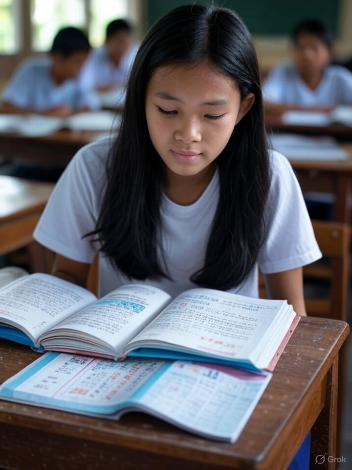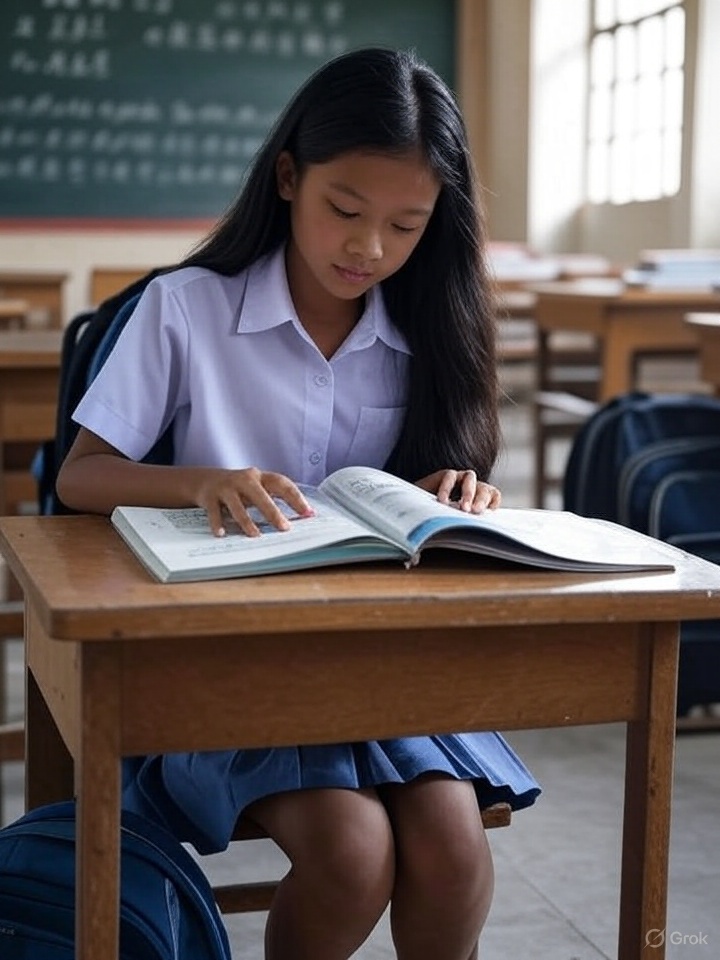 Her name is Veata. She is fourteen years old. She lives in Cambodia.