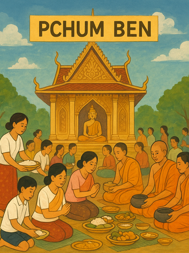 Pchum Ben is a major religious festival in Cambodia that honors ancestors who have passed away. It usually takes place in September or October and lasts for 15 days. During this time, Cambodian people visit pagodas (Buddhist temples) to offer food, especially rice, to monks and the spirits of their ancestors. They believe that these offerings help the spirits of their loved ones who are in the afterlife.