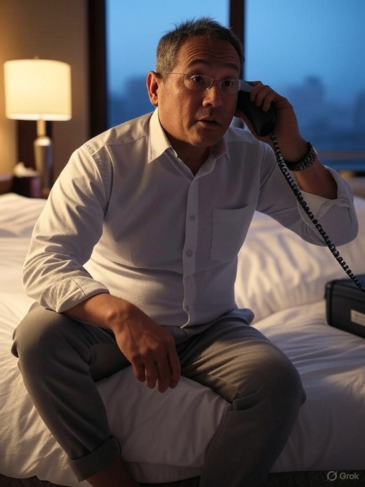 Guest (calling urgently): There’s a small fire in the bathroom!