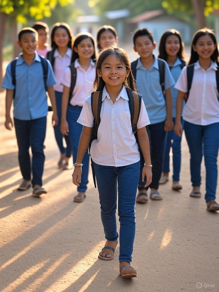 Sophea did not walk to school alone. She walked with her friends. - Sophea wanted to be a doctor.