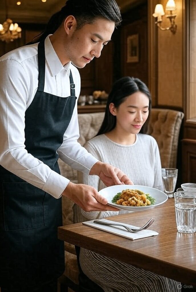 (The guest leaves. The waiter stands for a moment, then smiles quietly to himself. The restaurant feels calm again.)
