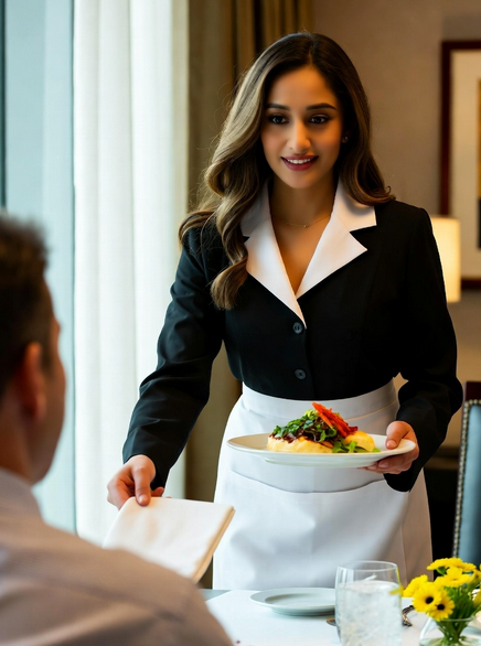 Nara worked in a big hotel as a waitress. She was friendly and kind. She always smiled and said hello to the guests. She listened carefully and understood what guests wanted. Nara knew the menu very well and could answer questions. She brought the food on time and kept the tables clean and tidy. When the restaurant was busy, she helped her coworkers and stayed calm. She solved problems politely and worked well with the team. Nara made the guests feel happy, and they wanted to come back. She helped the restaurant run smoothly every day.