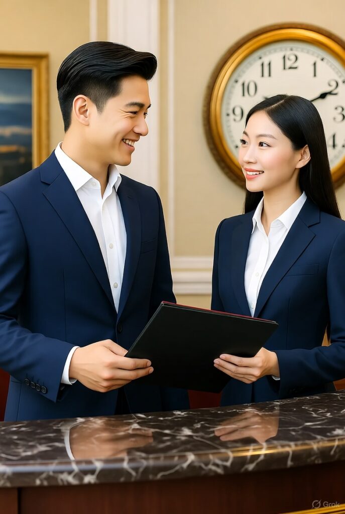 | 1. Clear Communication and Handovers | Speak clearly and politely: “Good morning, Mr. Smith, your room is ready.” / “Hello, Ms. Lee, I will help you with check-in.”Give all important information when your shift ends: “Room 502 VIP guest arrives at 3 PM; late check-out requested.” / “Guest in 305 requested extra towels.”Write notes about guest requests, room changes, or problems: Note in PMS: “Extra pillows for room 305.” / “Room 410 AC repaired.”Make sure the next person knows everything they need: Tell next shift: “Two rooms need cleaning before 2 PM.” / “Guest in 502 is waiting for late check-out.” |