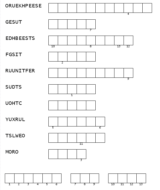 7 – m, 8 – a, 9 – j, 10 – l, 11 – f,