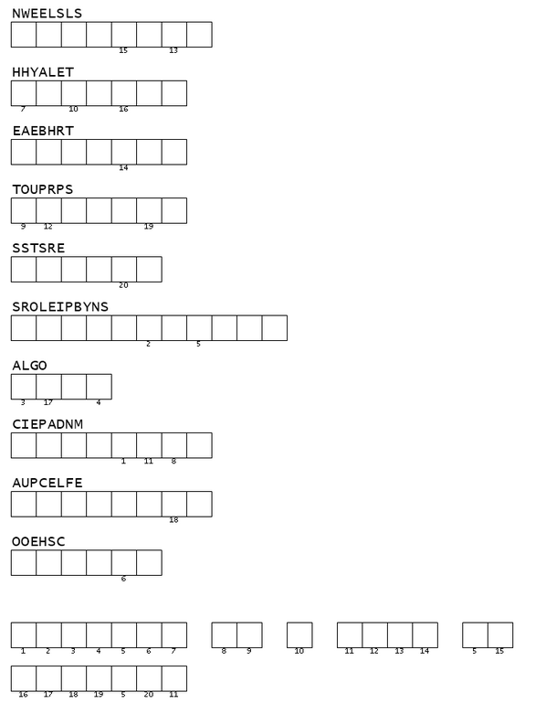 Scrambled words, find the correct word – and the phrase we are looking for: