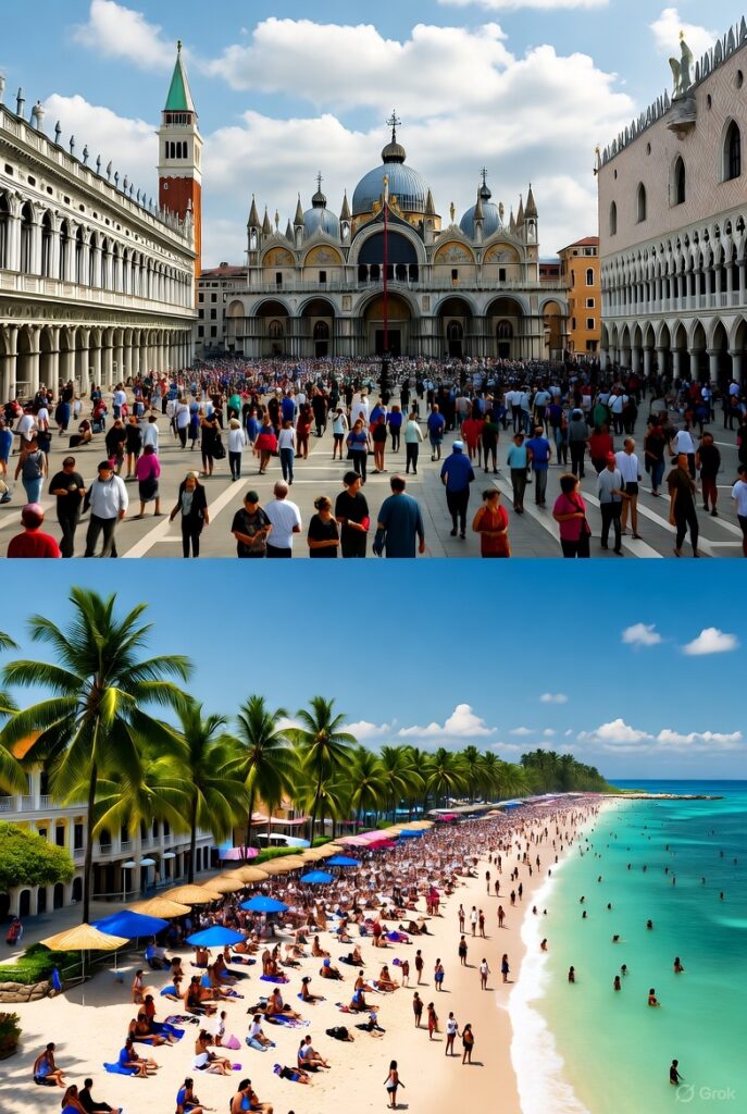 - Europe: Cities like Venice, Barcelona, and Amsterdam are very crowded.