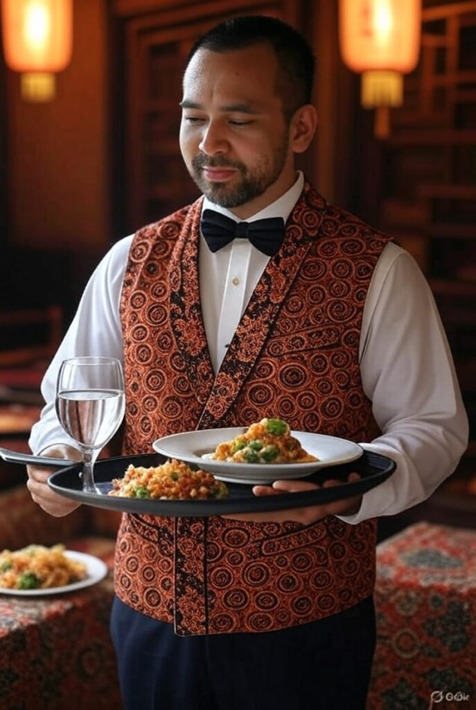 His name is Ari. He works in a big 5-star hotel. He works in the restaurant. Every morning he puts on his clean uniform and goes to work. He smiles and says hello to his friends and colleagues. He looks at the tables. The tables must be clean and ready for the guests. The glasses must be nice and shiny.