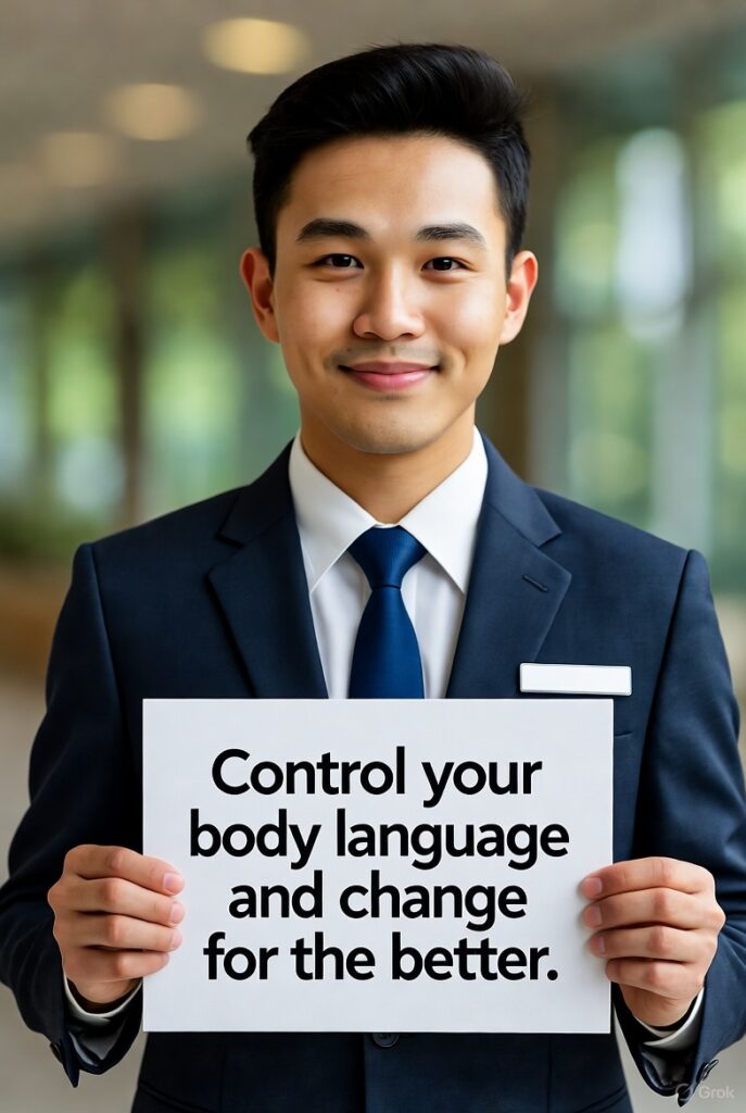 Using open hands is very important. When Ari shows his hands, it tells people he is honest and friendly. Guests feel safe and welcome. Open hands can be on the table, in front of the body, or when explaining something. Do not hide your hands in pockets. Do not wave them too much. Open hands show respect, honesty, and that Ari is ready to help.