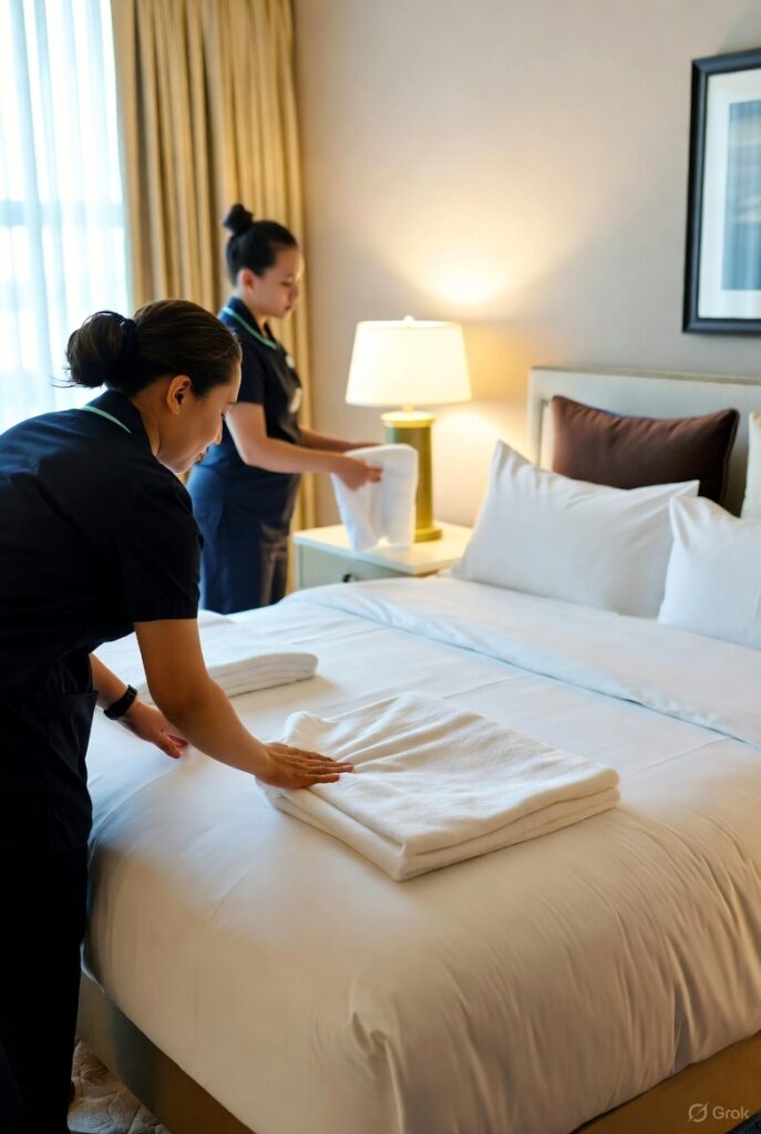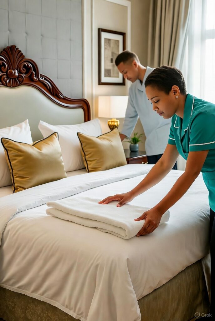 | Housekeeping | – Clean rooms carefully every day – Change towels and bed linen – Check bathroom, lights, and temperature – Notice small needs of guests | – Make the bed neatly and put pillows in order – Replace used towels and refill soap – Check that hot water works – Leave a small welcome note or flower |