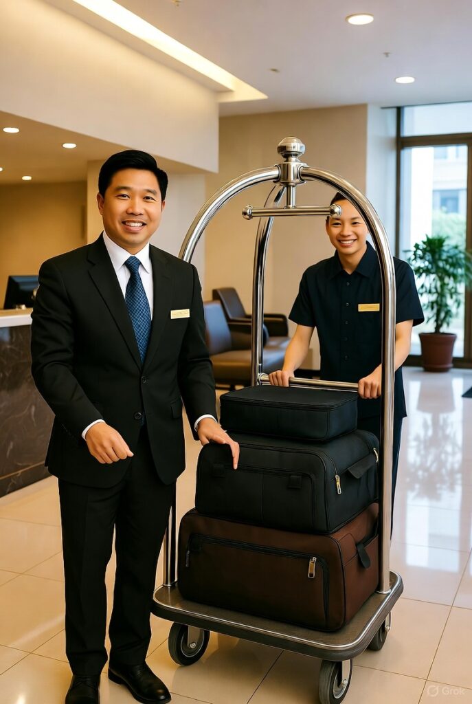 | Concierge / Guest Services | – Give advice about local attractions – Recommend shops, restaurants, and events – Help with transportation and bookings – Solve problems quickly | – Suggest the best time to visit a temple – Reserve tickets for a show or tour – Call a taxi or arrange a bus – Help a guest who lost something in the hotel |