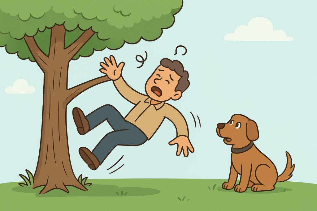 - What happens after Sherlock climbs the tree? → He bumps his head
