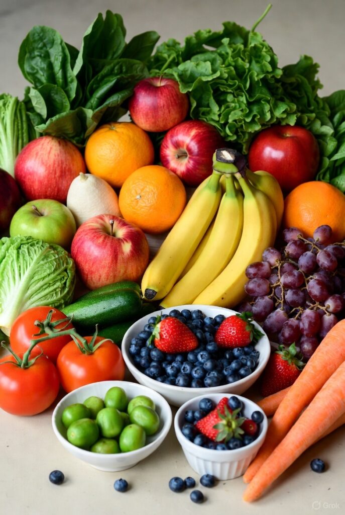 Today I eat a pumpkin and corn. I drink mineral water. I eat beans and a cucumber. For lunch, I eat ham and rice. For dinner, I eat tomatoes and spinach. I like fruit: a kiwi and an orange.