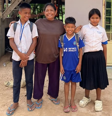 Now, San Tuch and her husband live in a safe home. They have a steady income from their pig farm. They buy food, save money, and take care of their children. They are very proud because their children go to school every day.