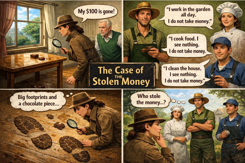 Detective Anna is in a small town. Today, she has a new case. Someone stole money from Mr. Green.